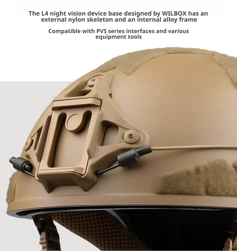 The L4 night vision device designed by WILCOX has a nylon frame on the outside and an alloy on the inside of its base